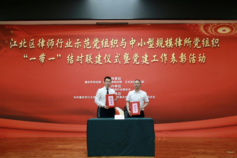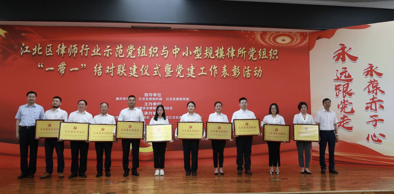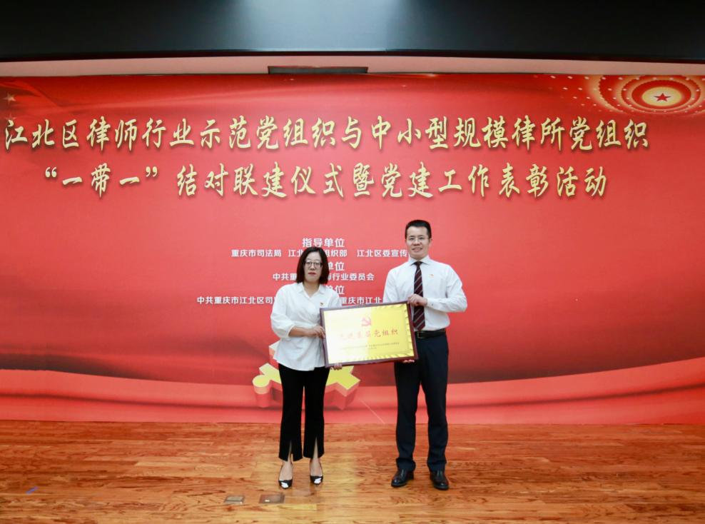 2023年7月15日,重慶市江北區(qū)律師行業(yè)示范黨組織與中小規(guī)模律所黨組織“一帶一”結(jié)對(duì)聯(lián)建儀式暨黨建工作表彰活動(dòng)在江北區(qū)會(huì)議中心召開(kāi),國(guó)浩重慶黨總支榮獲“先進(jìn)基層黨組織”榮譽(yù)稱號(hào)。國(guó)浩重慶黨總支書(shū)記、合伙人王致勇,國(guó)浩重慶黨總支組織委員、一支部書(shū)記、合伙人葉琴參加了本次會(huì)議。