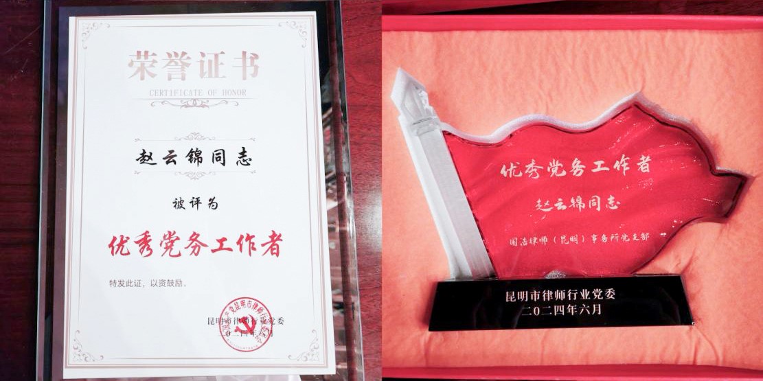 本次唐云尉、趙云錦律師的獲獎,是對國浩昆明黨建工作的充分肯定。國浩昆明黨支部將以此為契機,繼續加強黨建工作,不斷提升黨組織的凝聚力和戰斗力,號召黨員律師以實際行動踐行黨的宗旨,充分發揮黨員先鋒模范作用,以黨建促所建,不斷實現律所高質量發展,努力踐行“做黨和人民滿意的好律師”的使命。