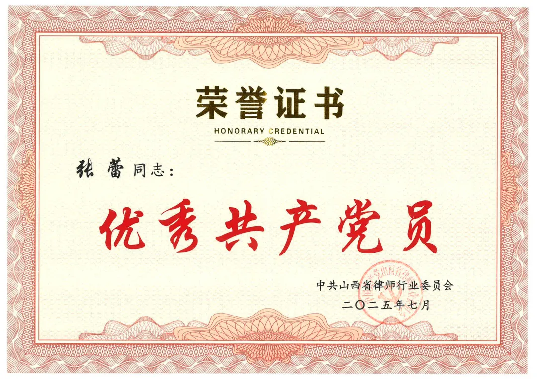 為認(rèn)真學(xué)習(xí)貫徹習(xí)近平新時(shí)代中國(guó)特色社會(huì)主義思想,持續(xù)推進(jìn)深入貫徹中央八項(xiàng)規(guī)定精神學(xué)習(xí)教育走深走實(shí),充分發(fā)揮山西省律師行業(yè)黨組織的戰(zhàn)斗堡壘作用和廣大黨員律師的先鋒模范作用,2025年7月11日,中共山西省律師行業(yè)委員會(huì)對(duì)20個(gè)先進(jìn)基層黨組織、50名優(yōu)秀共產(chǎn)黨員和30名優(yōu)秀黨務(wù)工作者進(jìn)行了表彰。國(guó)浩律師事務(wù)所監(jiān)事,國(guó)浩太原管理合伙人、主任張蕾榮獲 “2025年度山西省律師行業(yè)優(yōu)秀共產(chǎn)黨員”稱號(hào)。