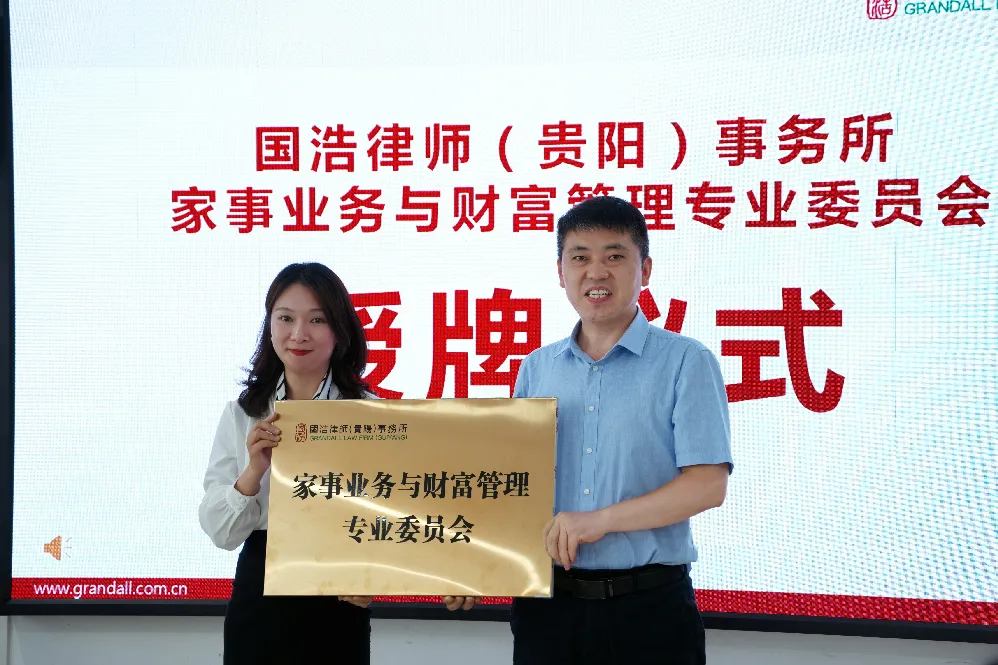 此外,依托律所團支部和婦女聯合會,國浩貴陽“家事業務與財富管理專業委員會”(以下簡稱“專委會”)同步設立,國浩貴陽管理合伙人、主任鄭世紅為其授牌。該專委會將聚焦婚姻家事糾紛調解、家族財富傳承規劃等核心領域,通過專業化團隊協作與精準化服務供給,為客戶提供全周期綜合解決方案,切實將團支部的活力優勢、婦聯的紐帶作用與專業委員會的業務專長轉化為服務民生、護航發展的務實效能。