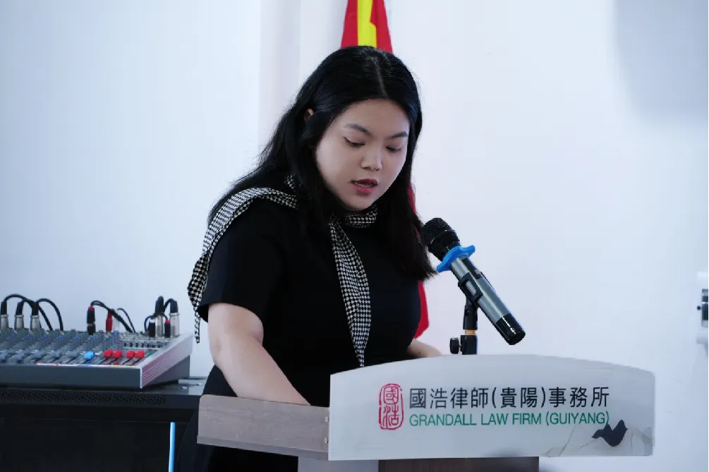 隨后,黃靜副局長和陳學君主席分別為國浩貴陽團支部和國浩貴陽婦女聯合會授牌。國浩貴陽團支部書記、律師李崢輝和婦女聯合會主席、合伙人廖智慧作為代表鄭重接過授牌,并結合自身職責與律所發展愿景發表感言,表達了立足新平臺、服務新使命的堅定決心。