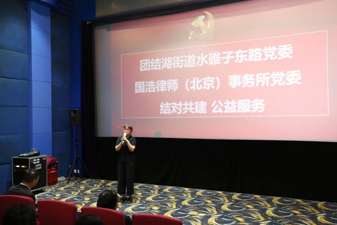 黨建共建結碩果,錦旗熠熠映初心。本次大會還特別設置了溫馨而莊重的“結對社區”授錦旗儀式。長期以來,國浩北京黨員律師們深入結對社區,積極開展義務司法調解、普法講座等志愿服務,切實解決了當地居民的法律難題,贏得了社區黨委的高度贊譽。結對社區代表朝陽區團結湖街道水碓子東路社區黨委副書記王建平同志、司法主任朱澤鴻同志親臨現場,將一面寫有“化解矛盾公益行,法送溫馨滿社區”的錦旗鄭重授予國浩北京黨委。