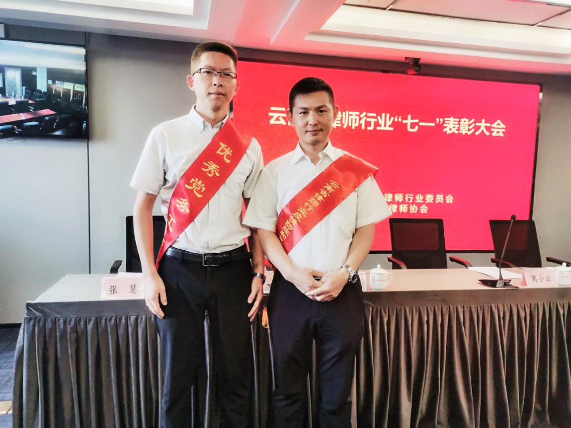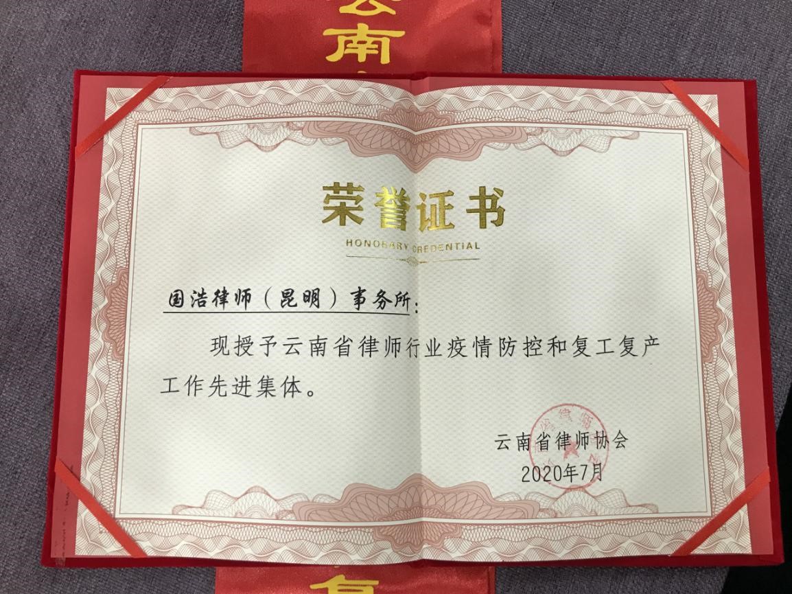 2020年6月29日,云南省律師行業(yè)黨委和云南省律師協(xié)會召開“七一”表彰大會。會上,國浩昆明辦公室獲得了“云南省疫情防控和復工復產(chǎn)工作先進集體獎”,國浩昆明黨支部榮獲“云南省律師行業(yè)2020年度先進基層黨組織”稱號,國浩昆明律師王懷非榮獲“云南省律師行業(yè)優(yōu)秀黨務(wù)工作者”稱號。國浩昆明管理合伙人、黨支部副書記聶智興和王懷非律師出席了會議并代表支部領(lǐng)取了獎項。