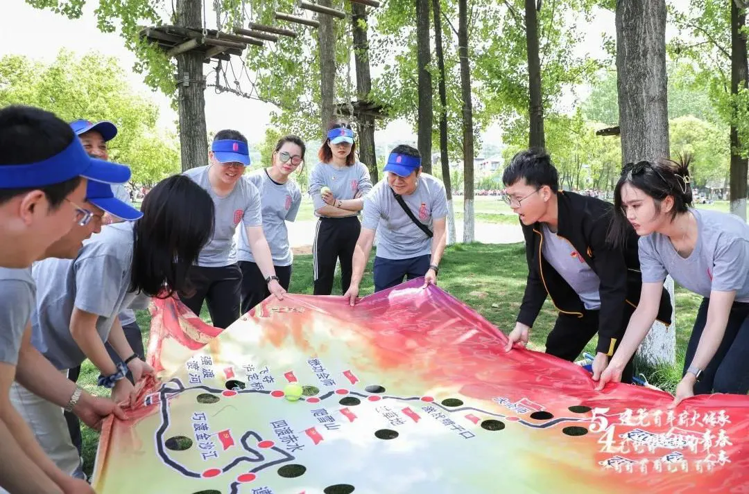 團(tuán)建活動的第一關(guān)是“重走長征路”互動過關(guān)賽。在一張繪有中央紅軍長征路線圖畫布上,重點(diǎn)列出了長征途中重要的地點(diǎn),國浩律師們一起推動代表“中央紅軍”的網(wǎng)球,從瑞金出發(fā),并按照長征時期的實(shí)際行軍路線前進(jìn),最終勝利“會師”。
