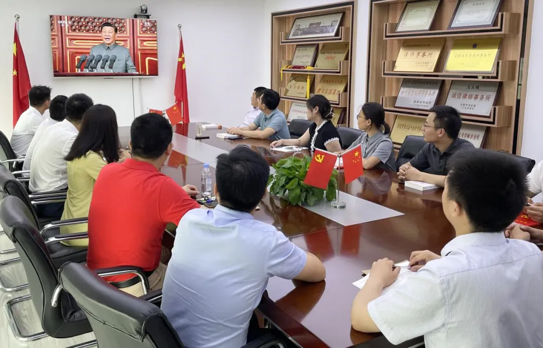 為慶祝中國共產黨建黨100周年,國浩合肥黨支部組織開展了系列黨建活動,堅定愛國信念。7月1日上午,在國浩合肥黨支部的組織下,國浩合肥全體黨員和律師在會議室集中觀看了“慶祝中國共產黨成立100周年大會”直播,共同見證這一偉大時刻。