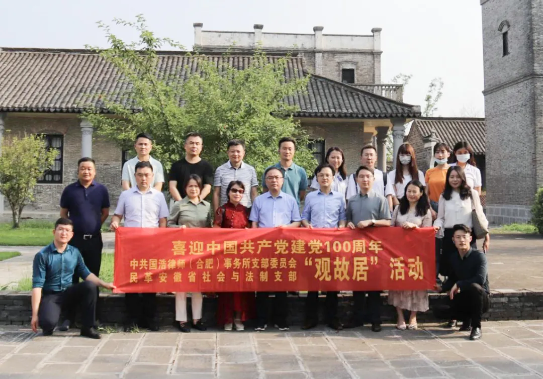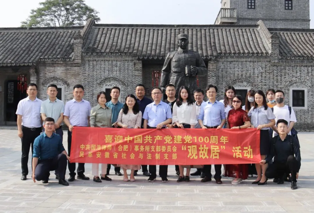 此前,國浩合肥黨支部攜手民革安徽省社會與法制支部于6月29日前往合肥市淝河鎮衛鄉村共同開展了“觀故居 強信念”主題黨建聯建活動。國浩合肥黨支部副書記畢為,民革安徽省社會與法制支部副主委、國浩合肥合伙人金磊,國浩合肥合伙人戴宇,律師王家龍、俞金華等共30余人參加了活動,緬懷革命先烈,堅定理想信念。