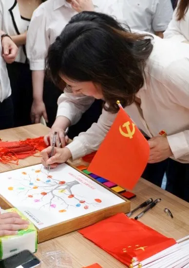 李世亮書記提筆揮墨,一氣呵成地寫下了“百年大黨生日快樂”幾個大字;國浩成都黨員律師認真地用自己的名字和指印組成一幅畫卷,茁壯的大樹上結滿了七彩的果實,寓意著黨員律師緊密團結在根深葉茂的黨的周圍,以表達對建黨百年華誕的真摯祝福。