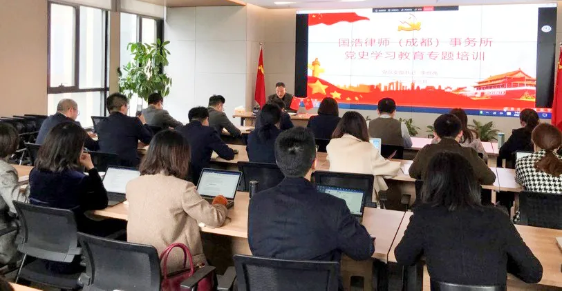 此前,李世亮書記主持開展了黨史學習教育專題培訓,國浩成都全體律師通過線上線下雙軌模式實時參加。通過學習黨史,大家的理想信念更加堅定,更有信心在自己的崗位上為實現中國夢作出力所能及的貢獻。