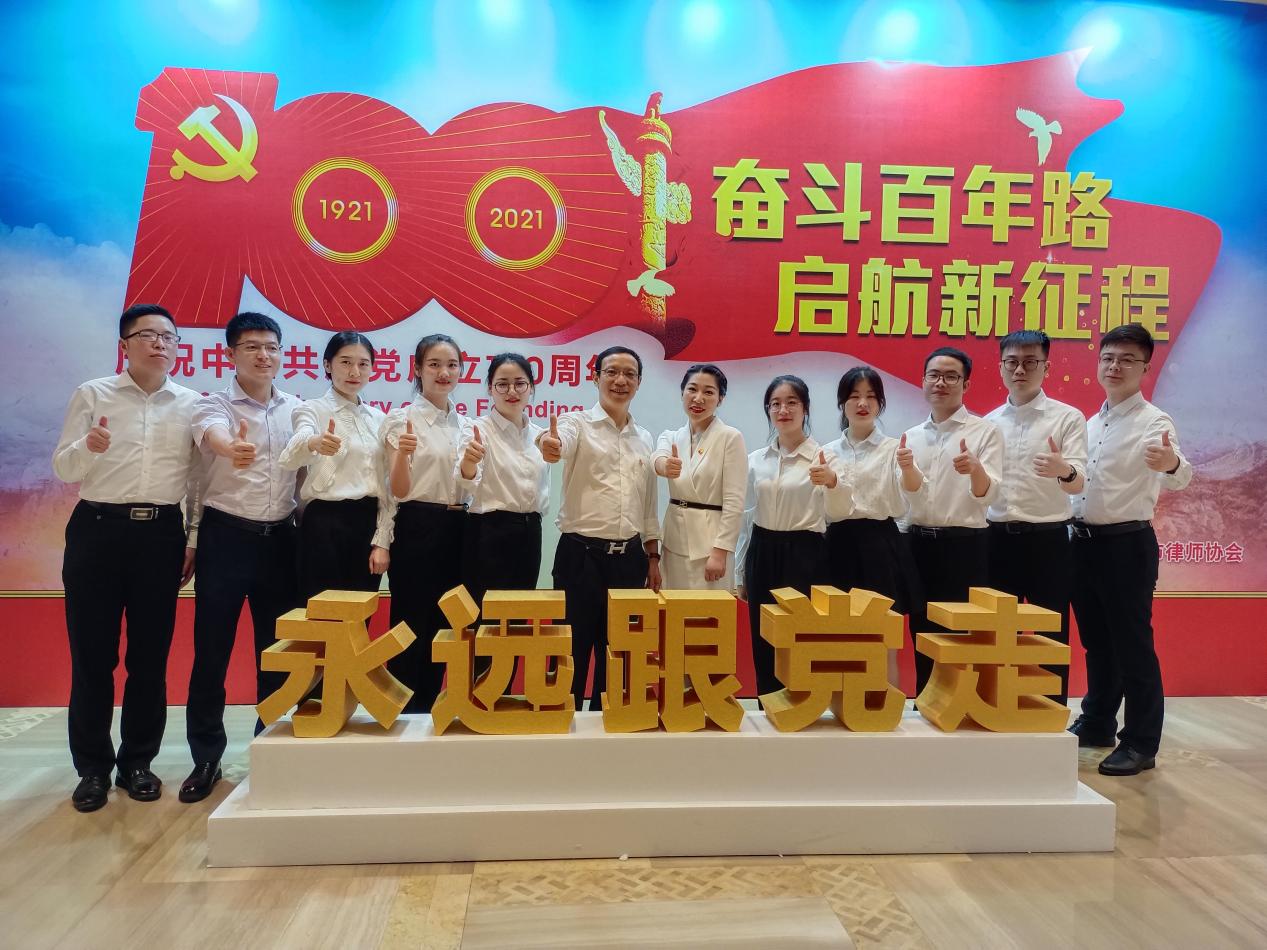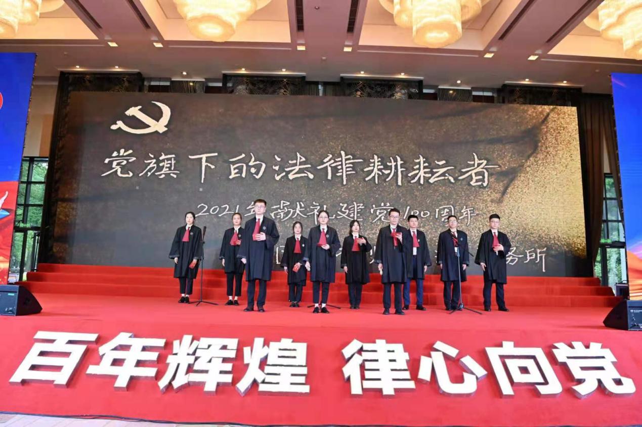 2021年6月25日,由武漢市律師行業(yè)黨委、武漢市律師協(xié)會主辦的“奮斗百年路 啟航新征程——武漢市律師行業(yè)慶祝中國共產(chǎn)黨成立100周年”主題活動在武漢舉行,來自湖北省、武漢市律師行業(yè)黨委、律師協(xié)會,市、區(qū)律師行業(yè)黨組織的代表等200余人參加。國浩武漢青年律師袁紛紛、胡超、馬怡飛、趙帥等共10人參加活動并表演了詩朗誦《黨旗下的法律耕耘者》,向黨的百年華誕獻(xiàn)上祝福。