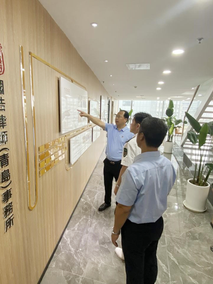 隨后,國浩青島黨支部接受了青島第八干休所的贈書,并帶領青島第八干休所領導一行進行參觀。在國浩青島的歷程墻、文化墻、榮譽墻前,王振寶書記、彭山嶺律師向領導一行詳細介紹了國浩青島的發展歷史與內部文化建設工作最新進展,雙方在交流中就開展下一階段共建活動進行了商議與安排。