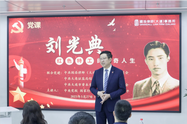 為深入學習貫徹黨的二十大精神,持續開展黨史學習教育,不斷提升黨員律師的黨性修養,2023年3月27日下午,國浩大連黨支部聯合大連市證監局綜合法務黨支部及大連市資本市場協會聯合支部開展聯合黨建活動,特別邀請中共臺灣英烈劉光典之子、中央黨校國家行政學院兼職教授、教育部思想政治工作創新發展中心專家劉玉平現場為與會的全體黨員上了一堂生動的紅色黨課。