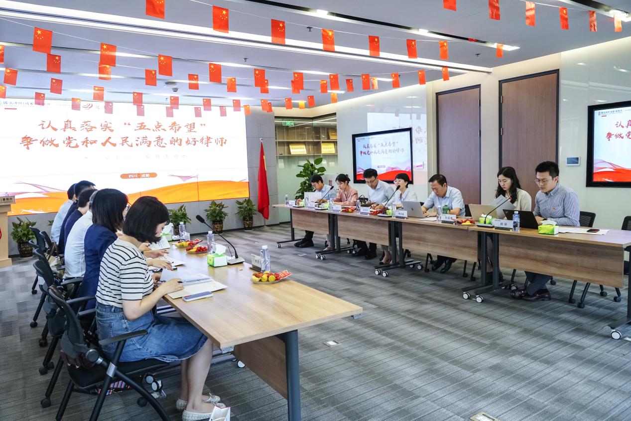 7月7日,為積極響應全國律協號召和四川省律協部署,國浩成都黨委組織開展“認真落實‘五點希望’爭做黨和人民滿意的好律師”黨日聯建活動,并邀請上海建緯(成都)律師事務所黨支部一同學習交流,以實際行動貫徹落實習近平總書記關于“努力做黨和人民滿意的好律師”重要指示精神。