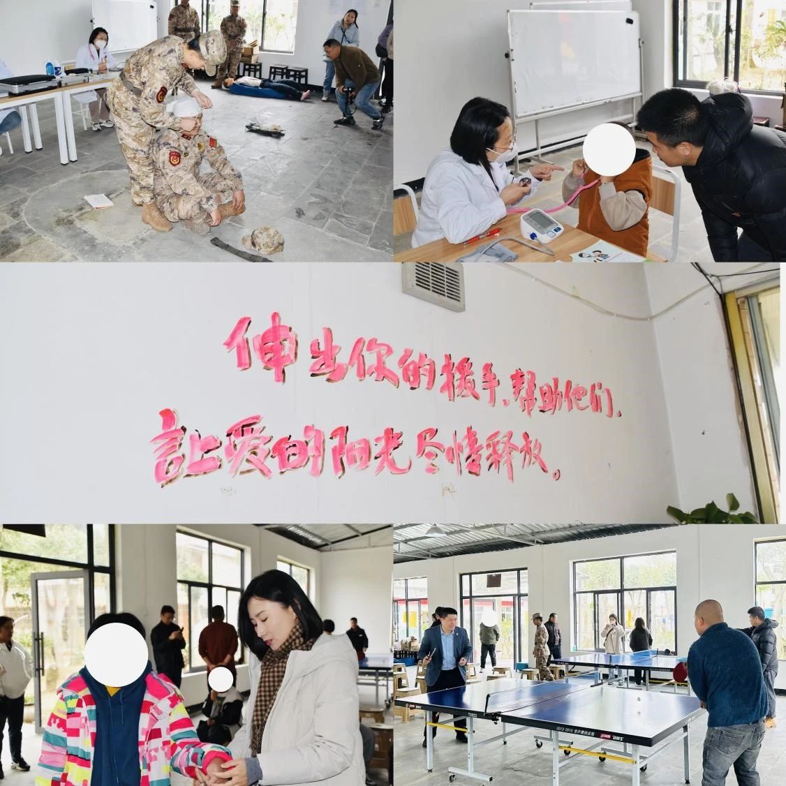 隨后,貴陽市烏當(dāng)區(qū)人武部的教官們現(xiàn)場開展了應(yīng)急救援演示,向參加活動的志愿者、學(xué)校老師和同學(xué)們教授了應(yīng)急止血包扎、心肺復(fù)蘇、海姆立克急救法等常用應(yīng)急救援知識;貴陽市烏當(dāng)區(qū)人民醫(yī)院中醫(yī)康復(fù)科的醫(yī)生們?yōu)橥瑢W(xué)們進(jìn)行了義診和康復(fù)訓(xùn)練指導(dǎo);貴州省律師協(xié)會未成年人保護(hù)專業(yè)委員會代表和國浩貴陽律師志愿者就未成年人保護(hù)及家園管理中遇到的法律問題與呂昕燭院長和老師進(jìn)行了深入交流,并提供法律建議。參加活動的志愿者們還與孩子們通過打乒乓球、做游戲等方式,主動與孩子們進(jìn)行交流互動,讓家園每個角落充滿愛和歡樂。