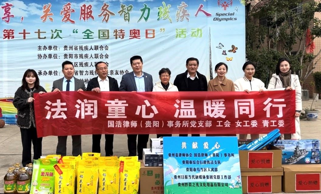 2024年3月5日,在第61個學(xué)雷鋒紀(jì)念日之際,國浩貴陽黨支部、工會、女工委和青工委組織發(fā)起“法潤童心·溫暖同行”學(xué)雷鋒、傳愛心公益活動。國浩貴陽黨員律師和青年律師志愿者再次來到貴陽市烏當(dāng)區(qū)東風(fēng)鎮(zhèn)“林檜陽光家園”智力殘疾人托管機(jī)構(gòu)看望老師和同學(xué)們。本次活動得到了貴州省律師協(xié)會黨支部、貴陽市綜合行政執(zhí)法支隊第三黨支部、烏當(dāng)區(qū)人武部、烏當(dāng)區(qū)人民醫(yī)院、貴州日報當(dāng)代融媒體集團(tuán)黨群工作部、貴州黔晨之光文化用品有限公司等單位和志愿者的積極響應(yīng)和參與。