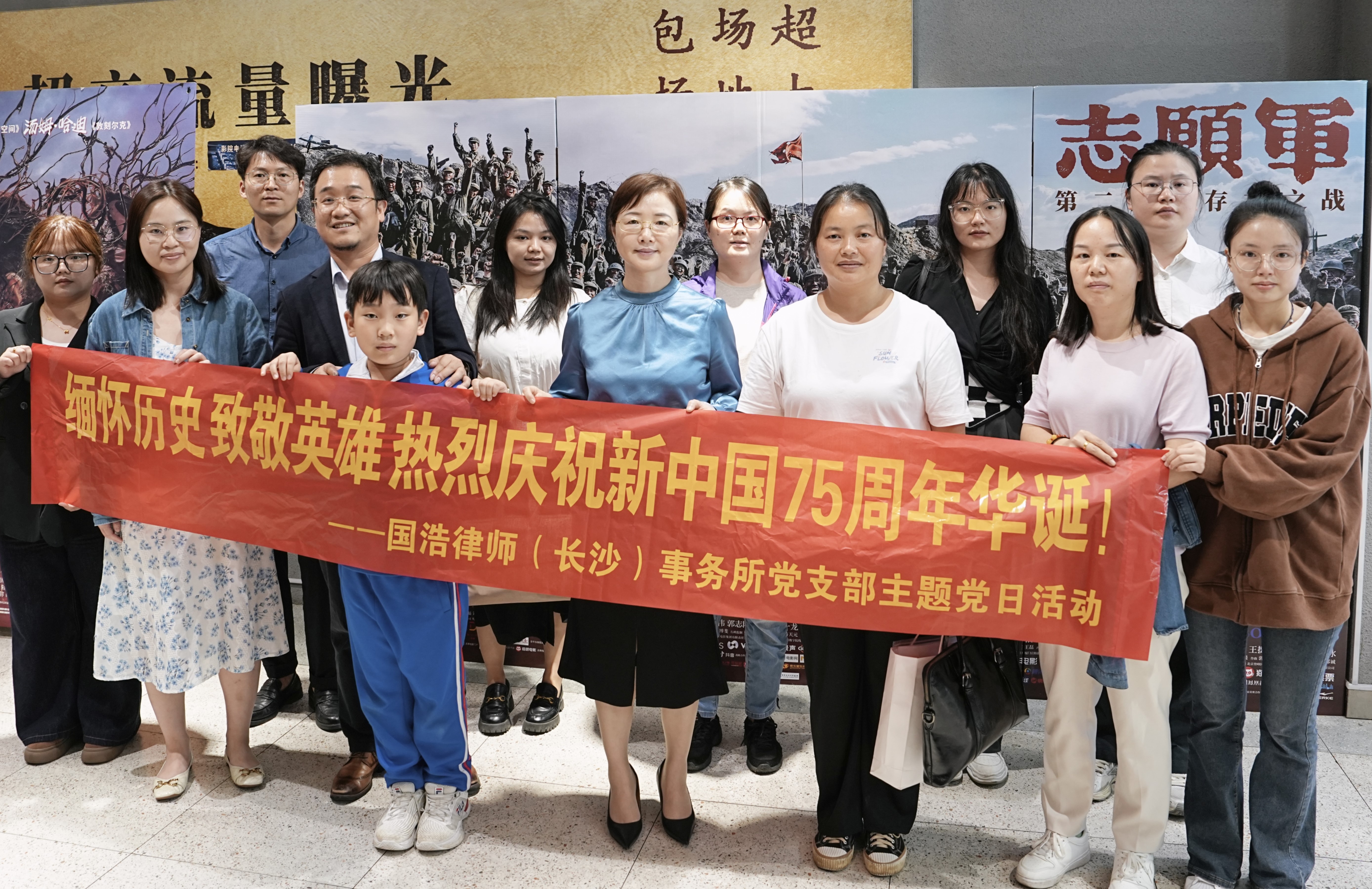 2024年10月,為慶祝新中國75周年華誕,厚植愛國主義情懷,國浩長沙黨支部組織開展了“緬懷歷史 致敬英雄”主題黨日活動,集體觀看紅色電影《志愿軍:存亡之戰(zhàn)》。影片以震撼人心的歷史畫卷,將我們拉回烽火連天的鐵原阻擊戰(zhàn)戰(zhàn)場,感受戰(zhàn)爭的殘酷和英雄的偉大。國浩長沙黨支部書記、管理合伙人李莉,國浩長沙合伙人董亞杰及其他黨員律師、入黨積極分子參與了本次主題黨日活動。