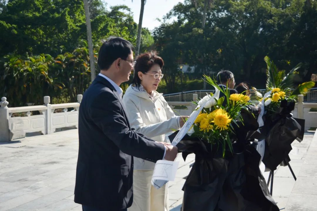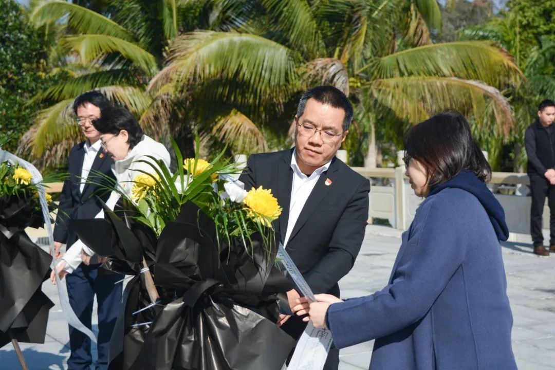 在烈士紀(jì)念碑前,國浩執(zhí)行合伙人、國浩海南管理合伙人姜丹,國浩海南管理合伙人、主任王云鵬等一起敬獻(xiàn)花籃。