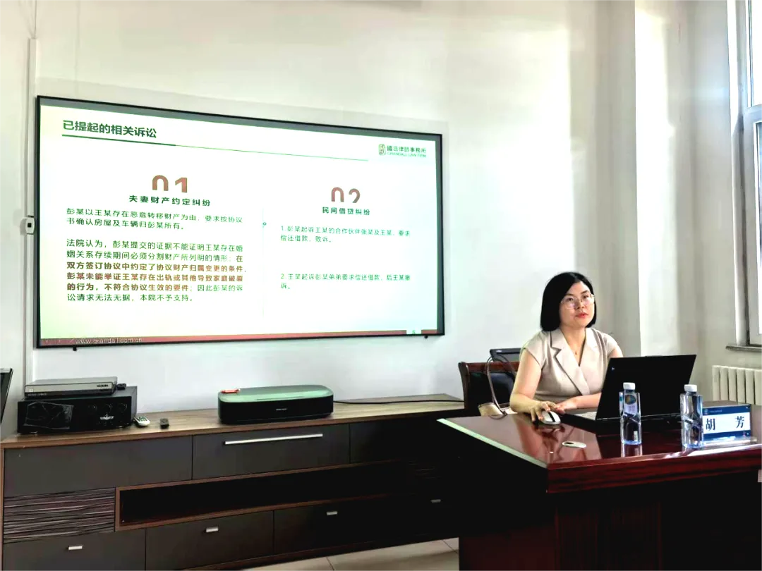 應部隊要求,胡芳律師在講座環節緊扣官兵實際關切,結合《民法典》與實務案例,就夫妻財產約定的法律效力、離婚糾紛中子女撫養權與撫養費的裁判規則以及出軌等過錯行為的法律責任三大核心議題展開深入解析。她通過剖析民法典中的“軍婚”保護、夫妻財產約定的有效性、婚內分割夫妻共同財產的法律要件、過錯方損害賠償等具體問題,系統闡明了相關法律風險防范要點。胡芳律師以實務案例、互動問答等生動形式充分調動官兵參與熱情,現場反響熱烈。
