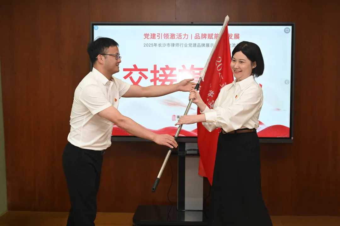活動接近尾聲時,劉愛良律師將活動旗幟交接給湖南高康律師事務(wù)所。