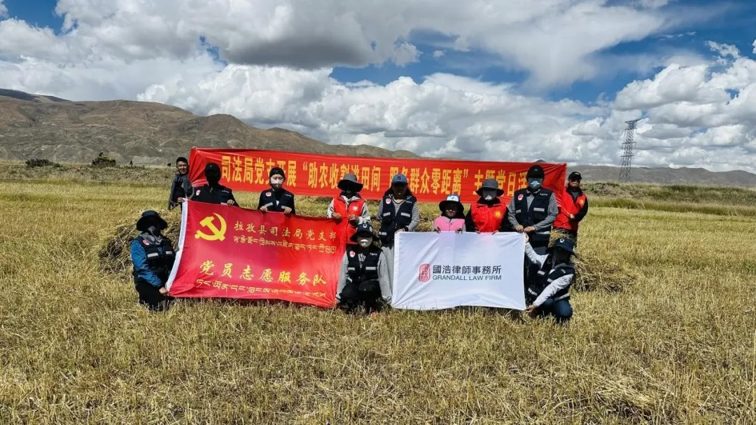 金秋九月,青稞飄香,正值拉孜縣農作物收割的關鍵窗口期。為切實解決部分農戶勞動力短缺的“急難愁盼”問題,進一步鑄牢中華民族共同體意識,深化民族團結進步創建工作,9月28日,國浩拉孜與拉孜縣司法局依托黨建共建基地,聯合開展“助農收割進田間服務群眾零距離”主題黨日活動。