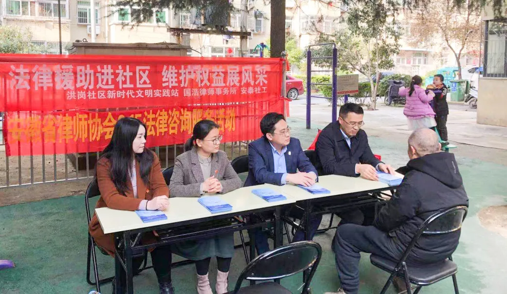 3月14日上午,徐凡、王家龍、劉競男、王飛、秦楠律師等及王曼曼同志在合肥市濱湖順園小區南區北廣場,針對該小區是安徽省目前最大的拆遷安置小區這一特殊情況,著重了解人民群眾的困難和建議,根據群眾訴求,面對面地講解法律知識、答疑解惑,為拆遷的后續問題提供法律咨詢服務。