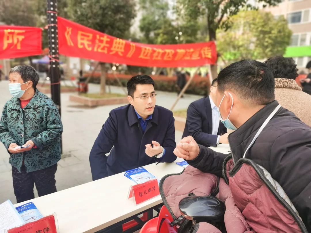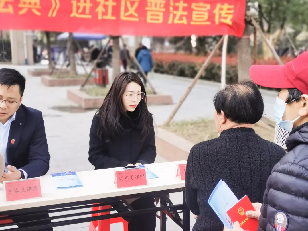 史東洋、畢為、鄭瑱律師從消費維權、勞動就業、婚姻家庭、創業投資等民事法律熱點角度出發,向社區居民普及法律知識、提供法律咨詢,并發放《民法典》手冊。活動現場氣氛熱烈,廣大社區居民踴躍咨詢。