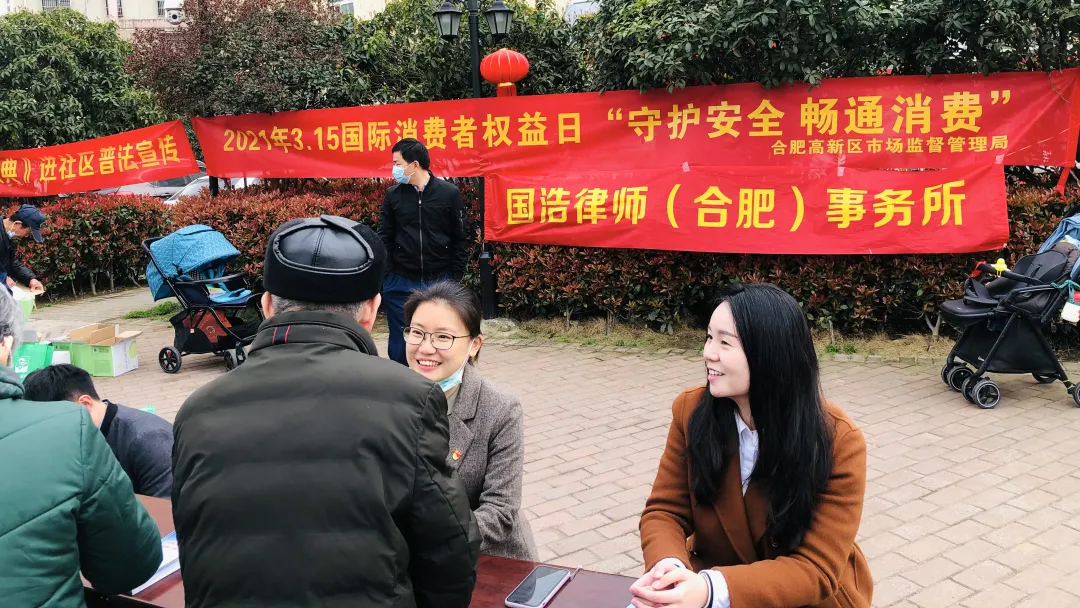 為提高消費者自我維權意識和自我保護能力,3月12-15日,在國浩合肥黨支部的組織下,國浩合肥黨支部書記、管理合伙人史東洋,副書記畢為,合伙人桑永標、徐凡,律師羅幸、鄭瑱、王家龍、劉競男、王飛、秦楠,行政人員王曼曼等分批走進洪崗社區、濱湖順園小區、永和家園小區,開展了“《民法典》進社區3·15普法宣傳活動”。