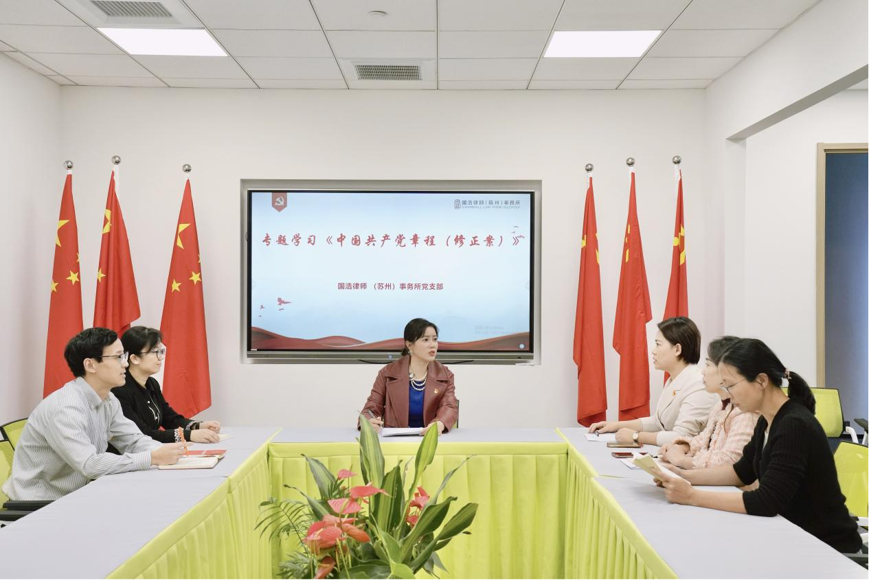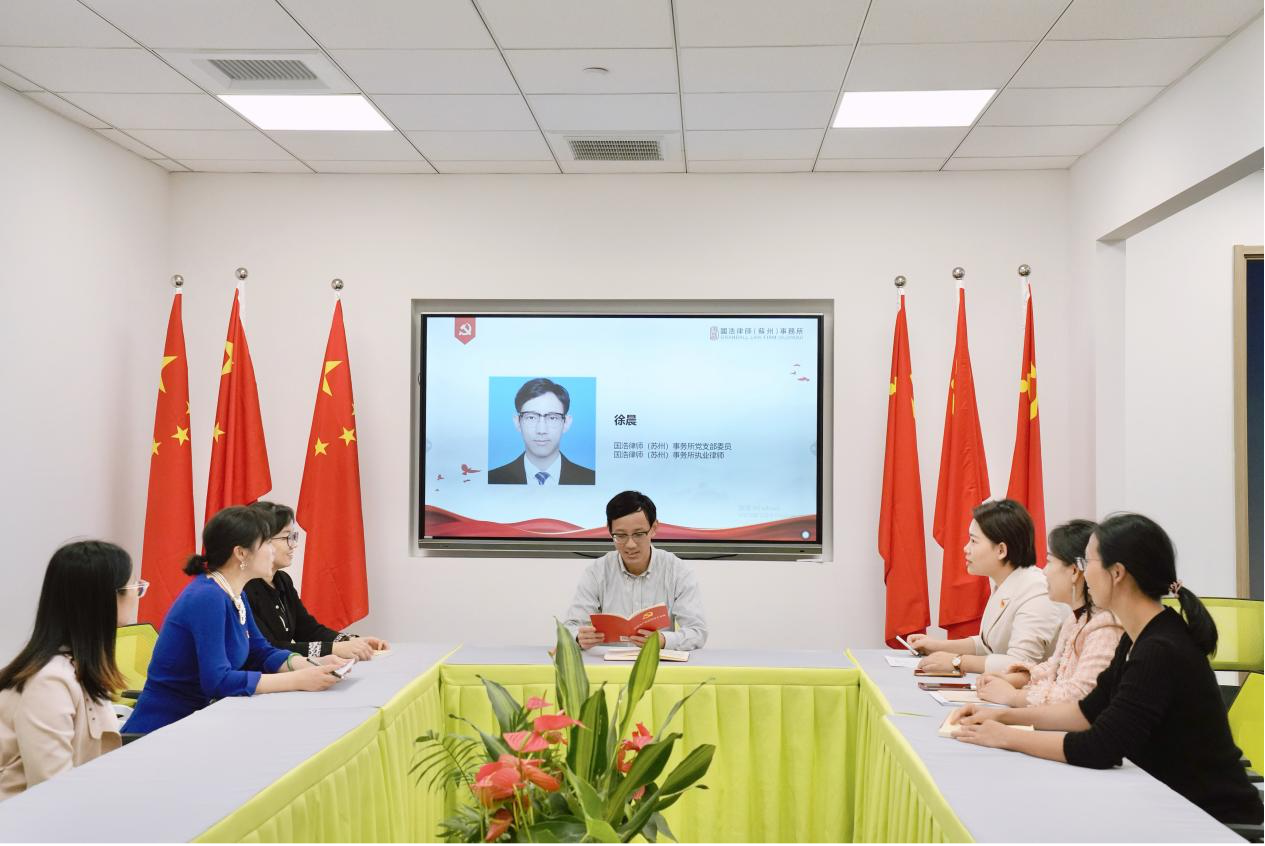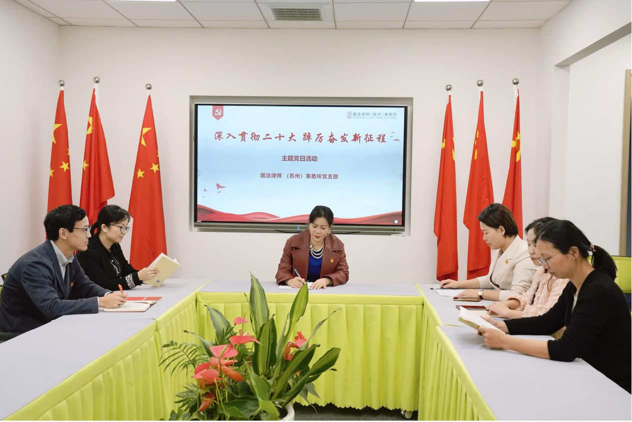 為深入貫徹落實黨的二十大精神,發揮律師隊伍在全面建設社會主義現代化,建設社會主義法治國家中的積極作用,2022年10月28日,國浩蘇州黨支部開展了“深入貫徹學習二十大,踔厲奮發新征程”主題黨日活動。國浩蘇州黨支部書記、管理合伙人、主任葛霞青,國浩蘇州黨支部副書記、合伙人陳靜瑤和李嵐,黨支部委員、合伙人王麗淋、律師助理徐晨等全體國浩蘇州律師參加了活動。