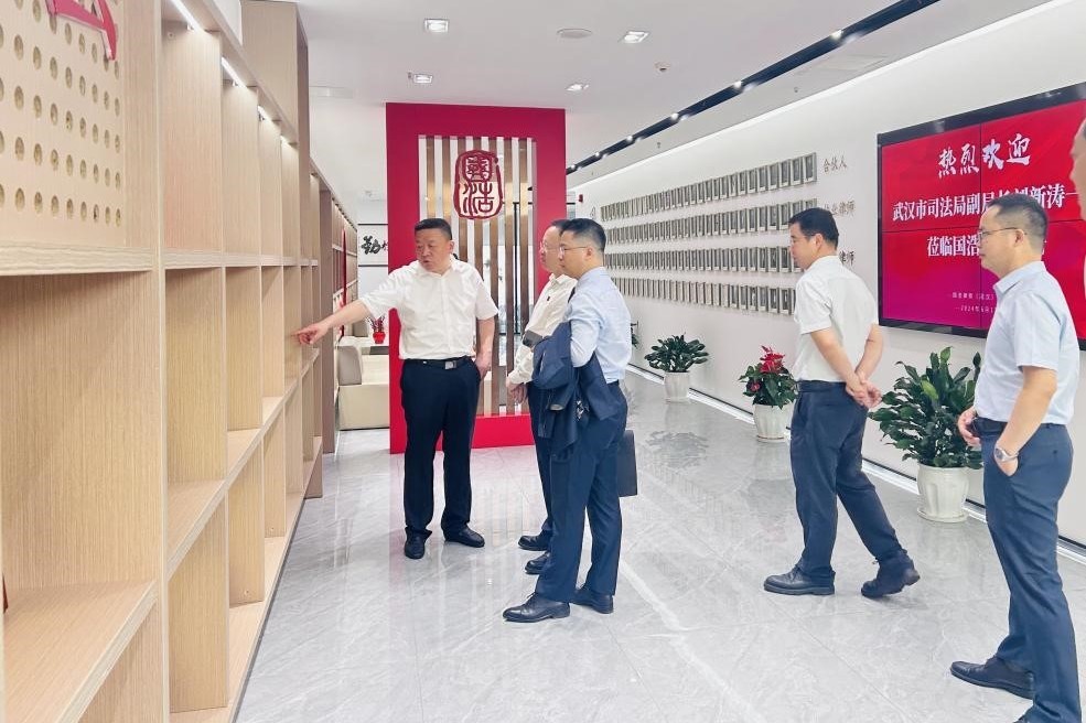 2024年6月13日,武漢市司法局黨委委員、副局長(zhǎng)、市律師行業(yè)黨委書記劉新濤,市司法局律師工作處處長(zhǎng)、市律師行業(yè)黨委副書記樊靜,市司法局律師工作處二級(jí)主任科員唐正旺,市律師協(xié)會(huì)會(huì)長(zhǎng)、市律師行業(yè)黨委副書記楊斌,市律師協(xié)會(huì)監(jiān)事長(zhǎng)、市律師行業(yè)紀(jì)委書記顧俊,市律師協(xié)會(huì)秘書長(zhǎng)陶長(zhǎng)玲,市律師協(xié)會(huì)常務(wù)副秘書長(zhǎng)、市律師行業(yè)黨委委員王建軍一行蒞臨國(guó)浩武漢辦公室開展四家律所調(diào)研活動(dòng)。國(guó)浩武漢黨支部書記、合伙人董超英,管理合伙人王亞軍,合伙人丁小軍、向思、段璀浩、周獻(xiàn)武,律師馬怡飛、何婷參加本次會(huì)議。