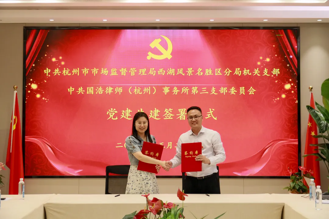 為深入貫徹黨的二十大及二十屆三中全會精神,加強基層黨組織建設(shè)效能,鞏固和拓展中央八項規(guī)定精神學習教育成果,構(gòu)建“資源共享、優(yōu)勢互補、協(xié)同發(fā)展”的黨建共建生態(tài),5月21日下午,中共杭州市市場監(jiān)督管理局西湖風景名勝區(qū)分局機關(guān)支部委員會(以下簡稱“景區(qū)分局機關(guān)黨支部”)與國浩杭州第三黨支部聯(lián)合開展了黨建共建活動。