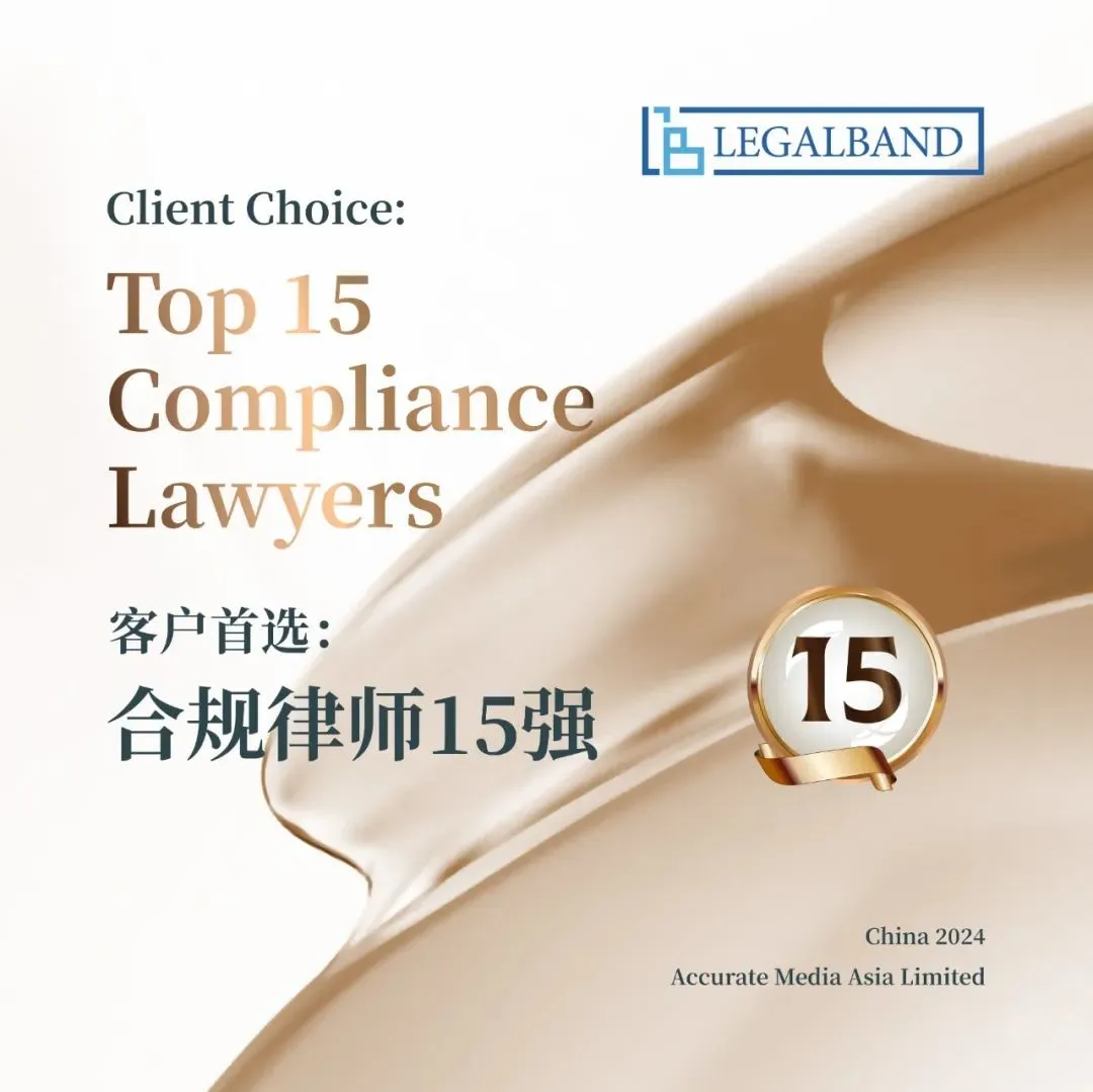 On 25 July 2024, LEGALBAND, a leading legal rating agency, announced the winners of 2024 Client Choice. HU Jing, partner of Grandall Beijing Office, won the Top 15 Compliance Lawyers.