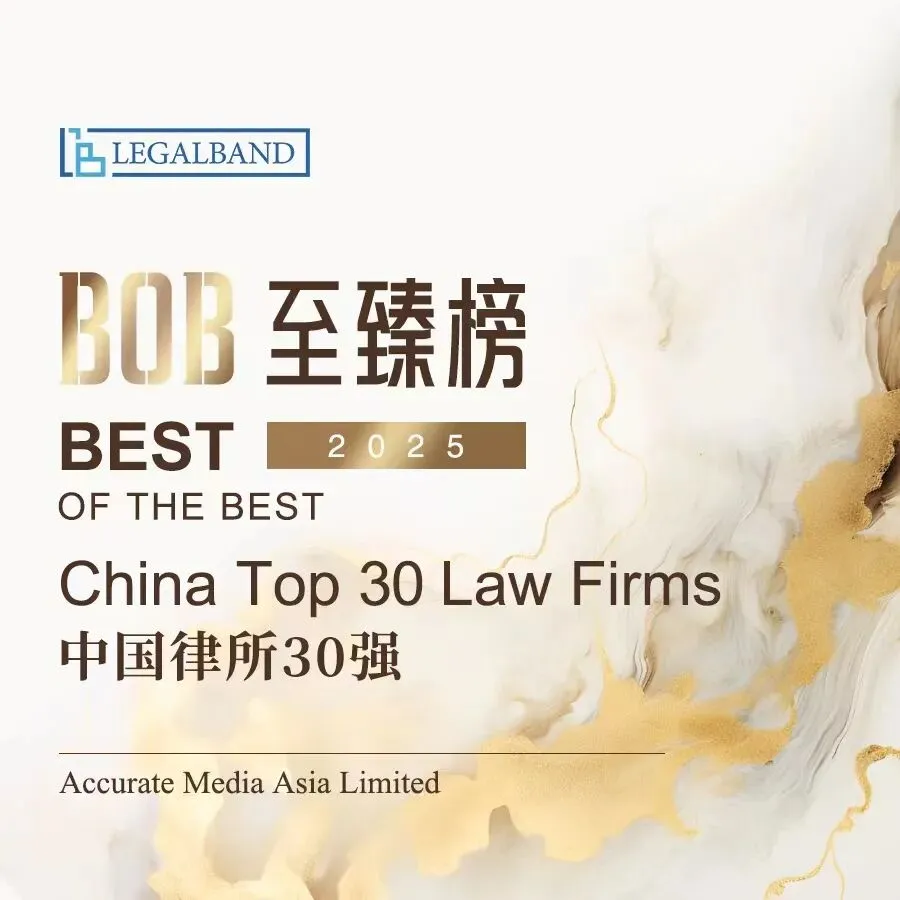 On 2 December 2025, LEGALBAND released the winners of "2025 LEGALBAND BOB China Top 30 Law Firms" and "2025 LEGALBAND BOB China Top 30 Lawyers". Grandall Law Firm was recognized in the list of "2025 LEGALBAND BOB China Top 30 Law Firms" for its outstanding market performance and favorable client feedback. Meanwhile, ZHANG Jun, partner at Grandall Shanghai office, was honored as one of the "2025 LEGALBAND BOB China Top 30 Lawyers".