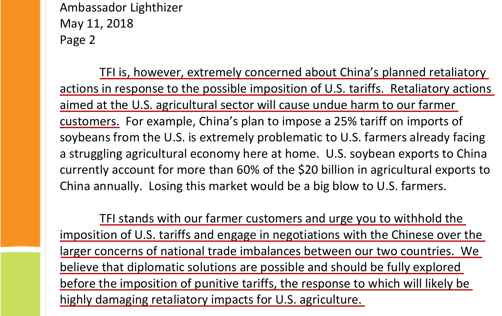 美國全國性貿易協會肥料研究所(The Fertilizer Institute,TFI)提交的書面意見原文部分截圖