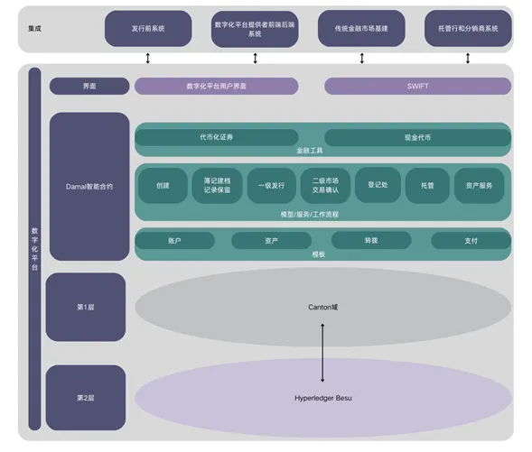 下圖展現的是以Evergreen數字化債券項目中數字化平臺架構的案例以及一般RWA整體項目結構: