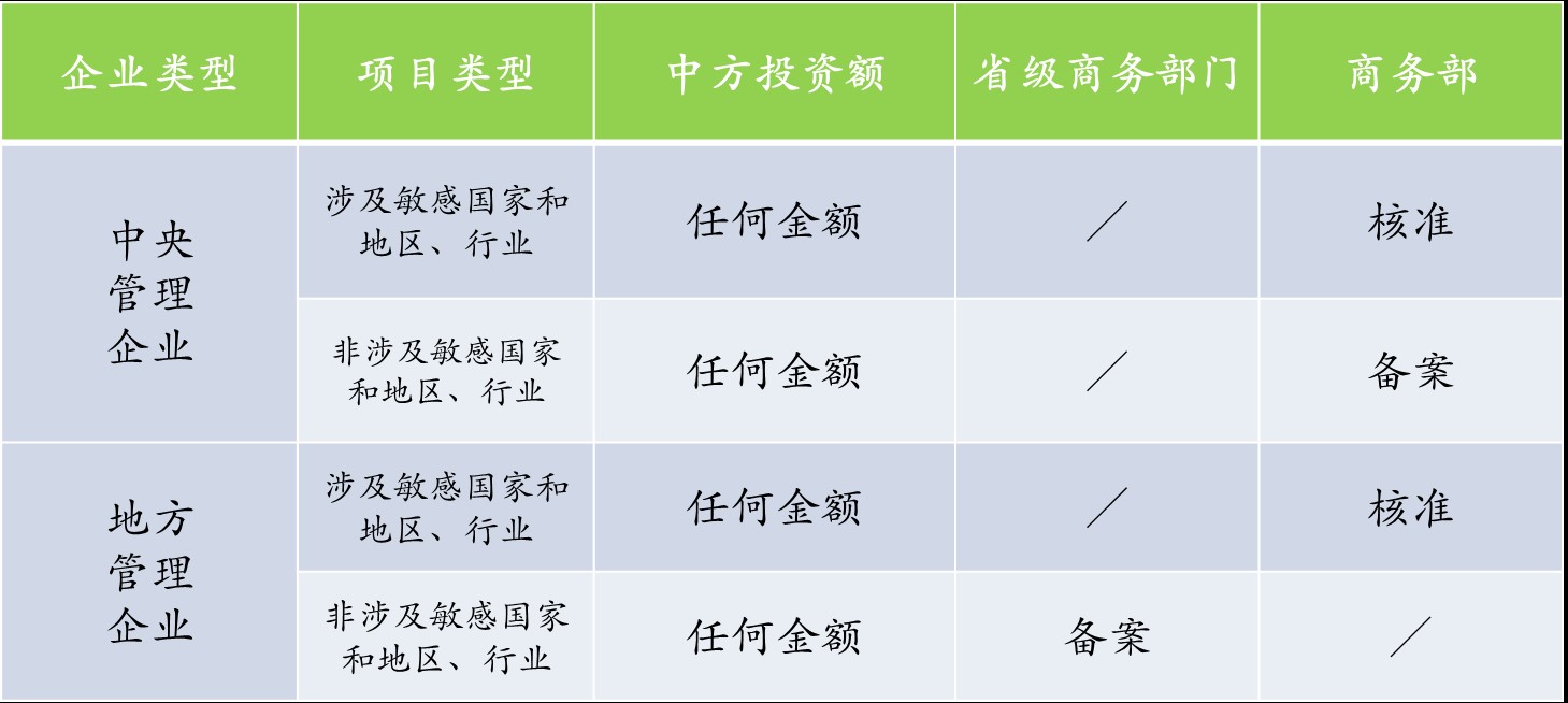 2014年9月,商務部頒布《境外投資管理辦法》,進一步確立了“備案為主、核準為輔”的新型管理模式,進一步推進了境外投資的便利化進程。除,除了涉及敏感地區和敏感行業的情況之外,其他企業境外投資全部實行3個工作日之內的備案制。
