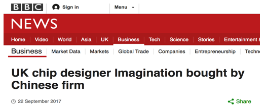中國私募投資基金——凱橋(Canyon Bridge)于2017年斥資5.5億英鎊(約合49億元人民幣)收購英國芯片巨頭Imagination。