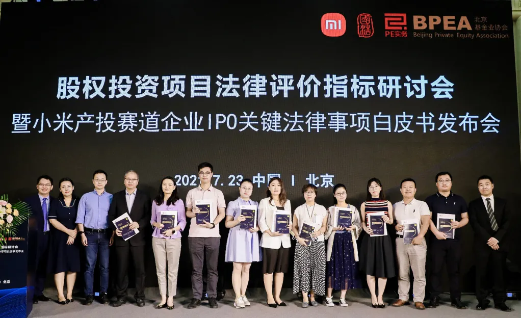 7月23日,“股權投資項目法律評價指標體系研討會暨小米產投賽道企業IPO關鍵法律事項白皮書發布會”在北京成功舉辦。本次活動由PE實務、北京基金業協會主辦,小米集團法務部和國浩律師事務所支持。