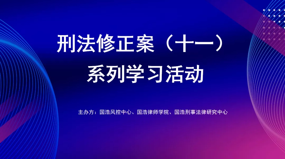 為深入學習貫徹落實《刑法修正案(十一)》及其他相關法律、法規、政策,進一步提高國浩律師的風控意識和專業能力,國浩風控中心、國浩律師學院和國浩刑事業務委員會暨法律研究中心近期共同組織了《刑法修正案(十一)》系列學習活動,并共同制作了《刑法修正案(十一)系列學習活動學習資料》。