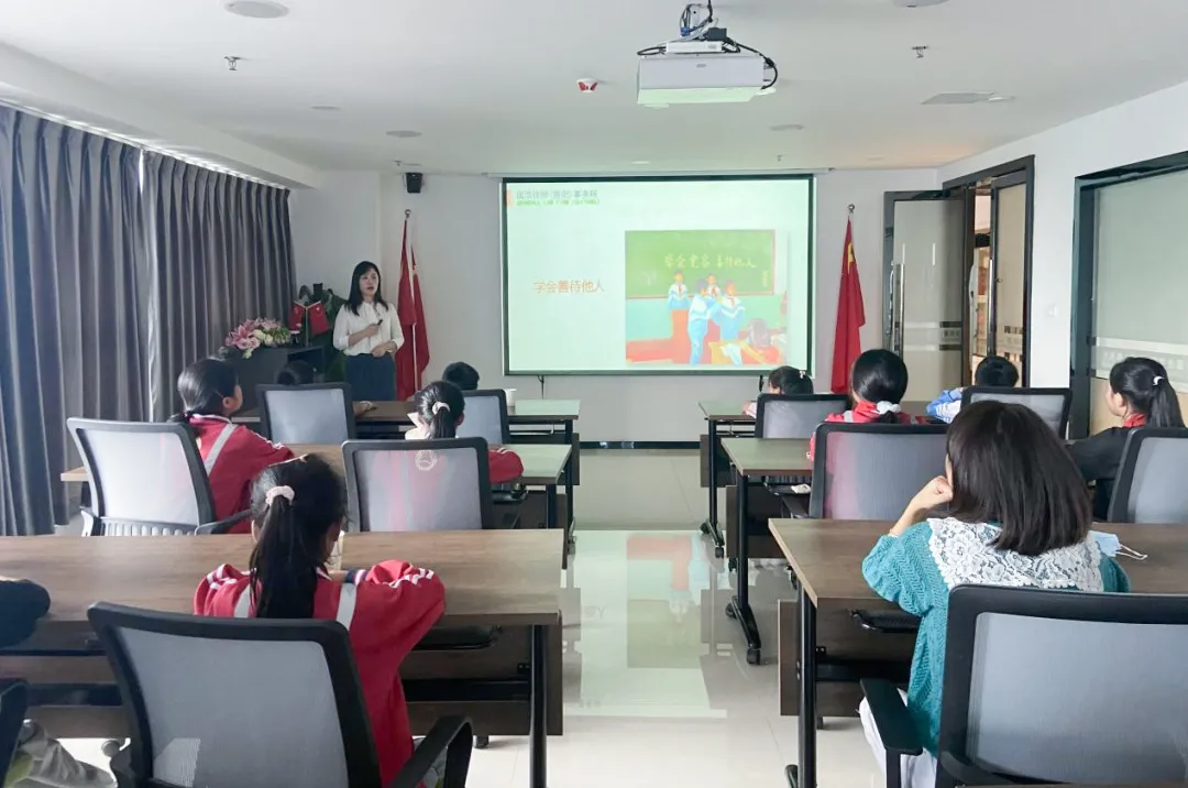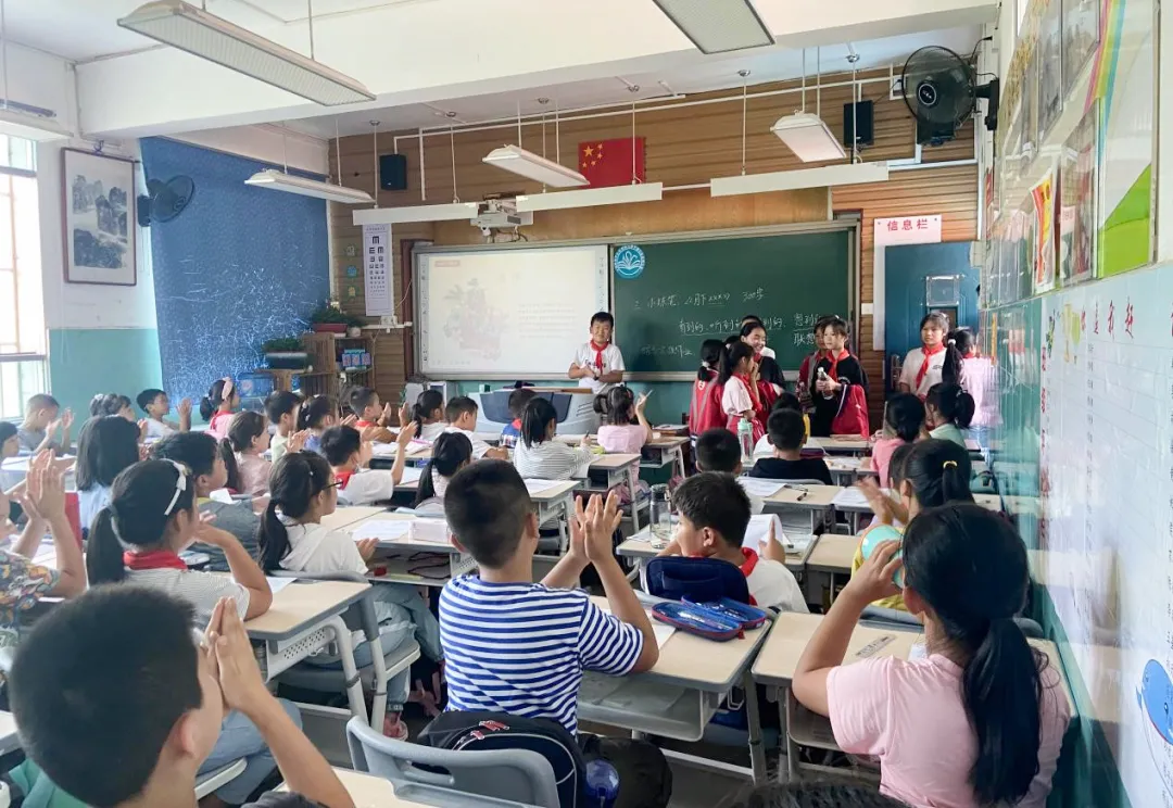 下午,在國浩貴陽黨支部書記、合伙人蘭鋼與國浩貴陽合伙人賈明的帶領下,大家共同前往貴陽市南明區示范學校甲秀小學本部和分校進行了參觀交流。在甲秀小學本部,通過老師的介紹,定威水族鄉中心校的師生們共同感受了甲秀小學的辦學理念,深厚的文化底蘊以及良好的教學環境。參觀時正值甲秀小學各班班會時間,同學們在老師帶領下走上了甲秀小學一年級二班的講臺,同班級同學問好,也收到了來自同學們的熱情掌聲。