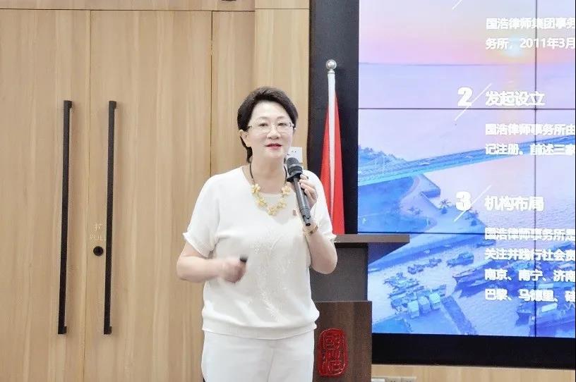姜丹主任向王承杰秘書長一行介紹了國浩的發(fā)展歷程和專業(yè)法律服務,以及中改院—國浩自貿(mào)港法律研究院、國浩各業(yè)務委員會暨法律研究中心、民商事爭議解決論壇等的情況,并對國浩海南在專業(yè)發(fā)展、參與推進仲裁、商事調(diào)解等助力海南自貿(mào)港構建多元商事糾紛化解機制等方面的工作情況進行了匯報。