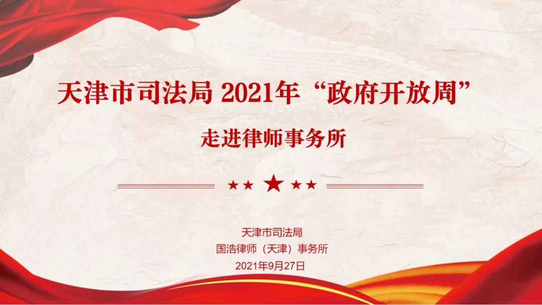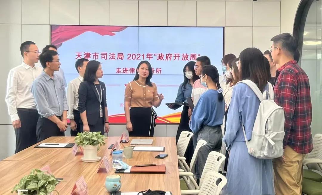 2021年9月27日,天津市司法局2021年“政府開放周”系列活動之“走進律師事務所”活動在國浩天津順利舉行,天津市司法局律師工作處四級調研員張敬帶領天津大學法學院的師生代表一行十余人來到國浩天津辦公室進行了參觀訪問。國浩天津管理合伙人、主任梁爽,管理合伙人曹會杰、白顯月、韋祎和青年律師普峰熱情接待并座談交流。