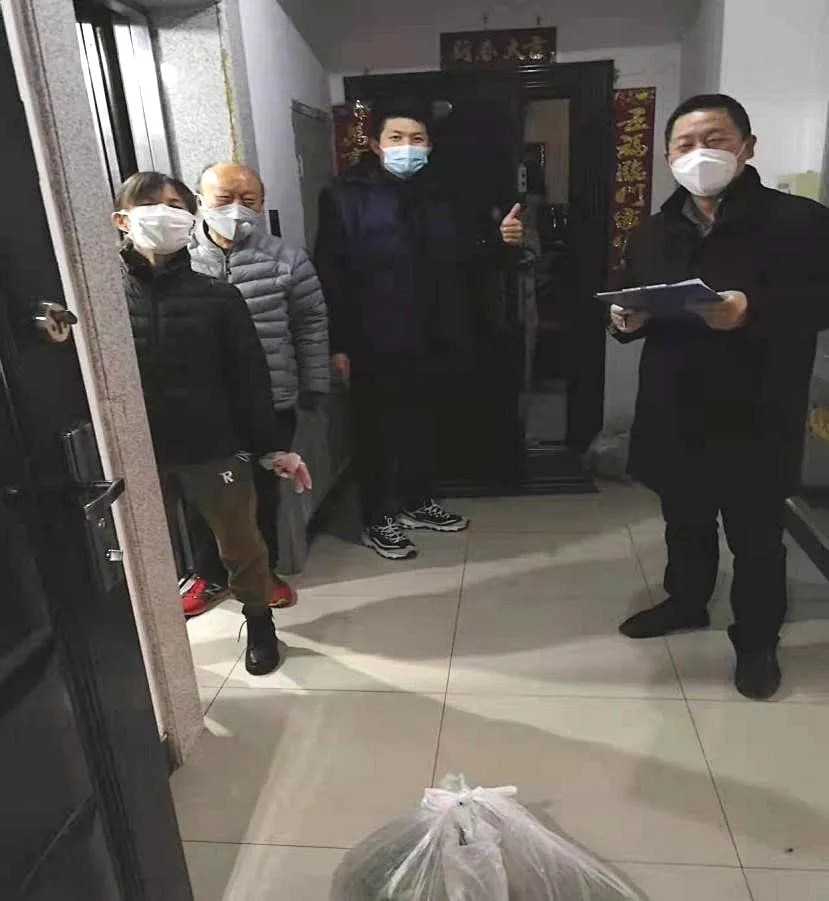 為了保障居民家庭儲備生活物資,雷馳朋律師自發聯系了附近超市,在小區服務群里給大家發布購物鏈接及聯系方式,發起了“購物接龍”,并挨家挨戶地把購物袋送至住戶家門口,確保群眾基本生活無憂。同時,還和其他志愿者一起,為居民上門回收垃圾,竭力減少交叉感染的可能性。