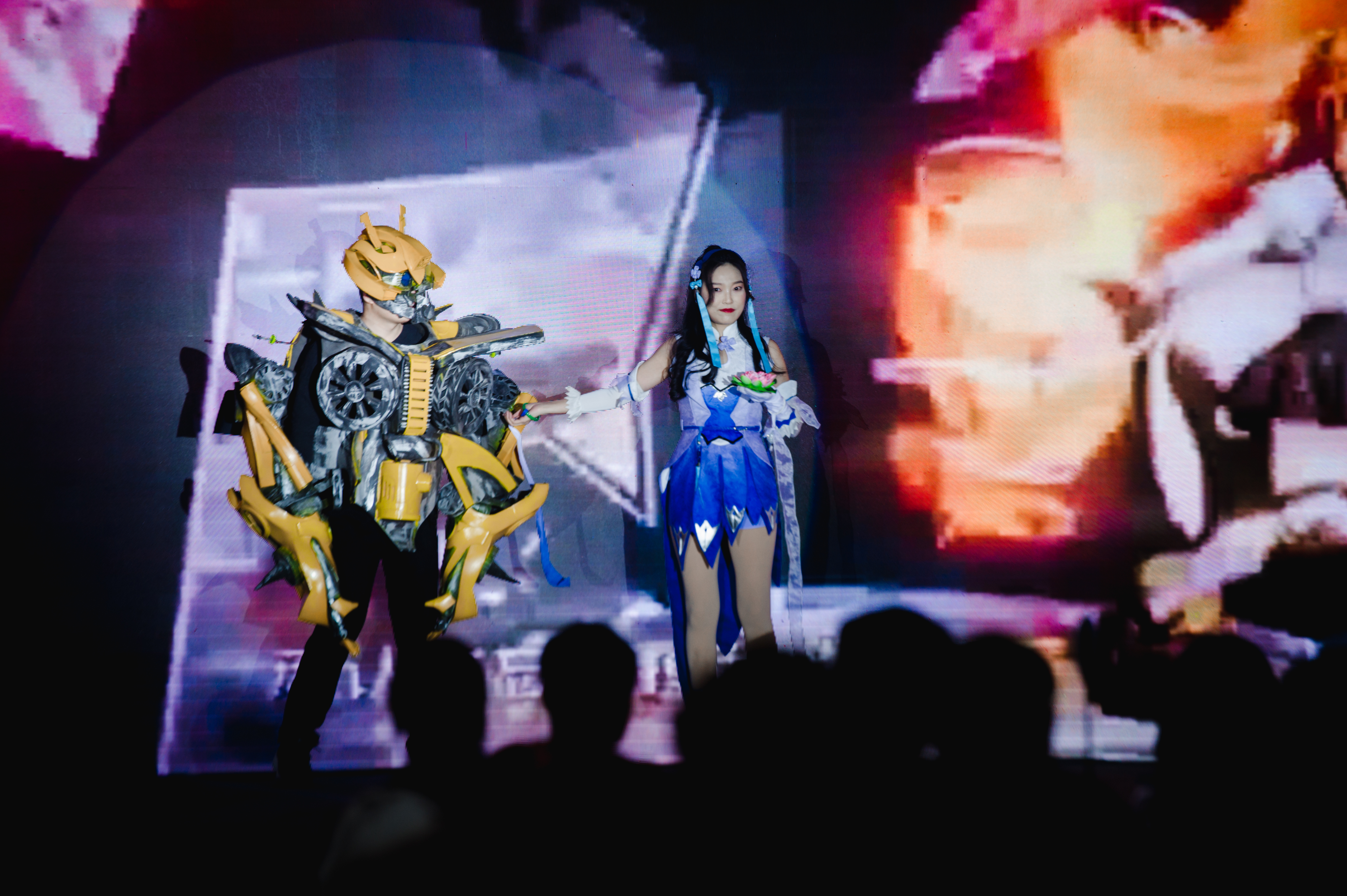 紅色大褂、復古墨鏡,折扇一敲請客官你細聽分說,古風開場舞《說書人》“嗨翻全場”;現象級手游cosplay《王者歸來》以高度還原的造型和歌聲為大家帶來了一場視聽盛宴;光影交替,手影舞《我和你》營造出了玄幻的夢境;小提琴琴音悠揚婉轉,一首《卡農》和《Zi-Zi's Journey》讓大家如癡如醉;小品《相親》刻畫出了各種人物百態;角色反串,原創小品《公主逃婚記》令人捧腹大笑;舞蹈《本色出演》將兩段風格迥異的舞蹈串燒在一起,怪誕無厘頭和青春活力矛盾又統一;歌舞串燒《回憶殺》與大家共同留下美好回憶;晚會的最后,國浩青島女工委帶來了《時裝走秀》,盡顯嘉人芳華,走出了國浩風采。