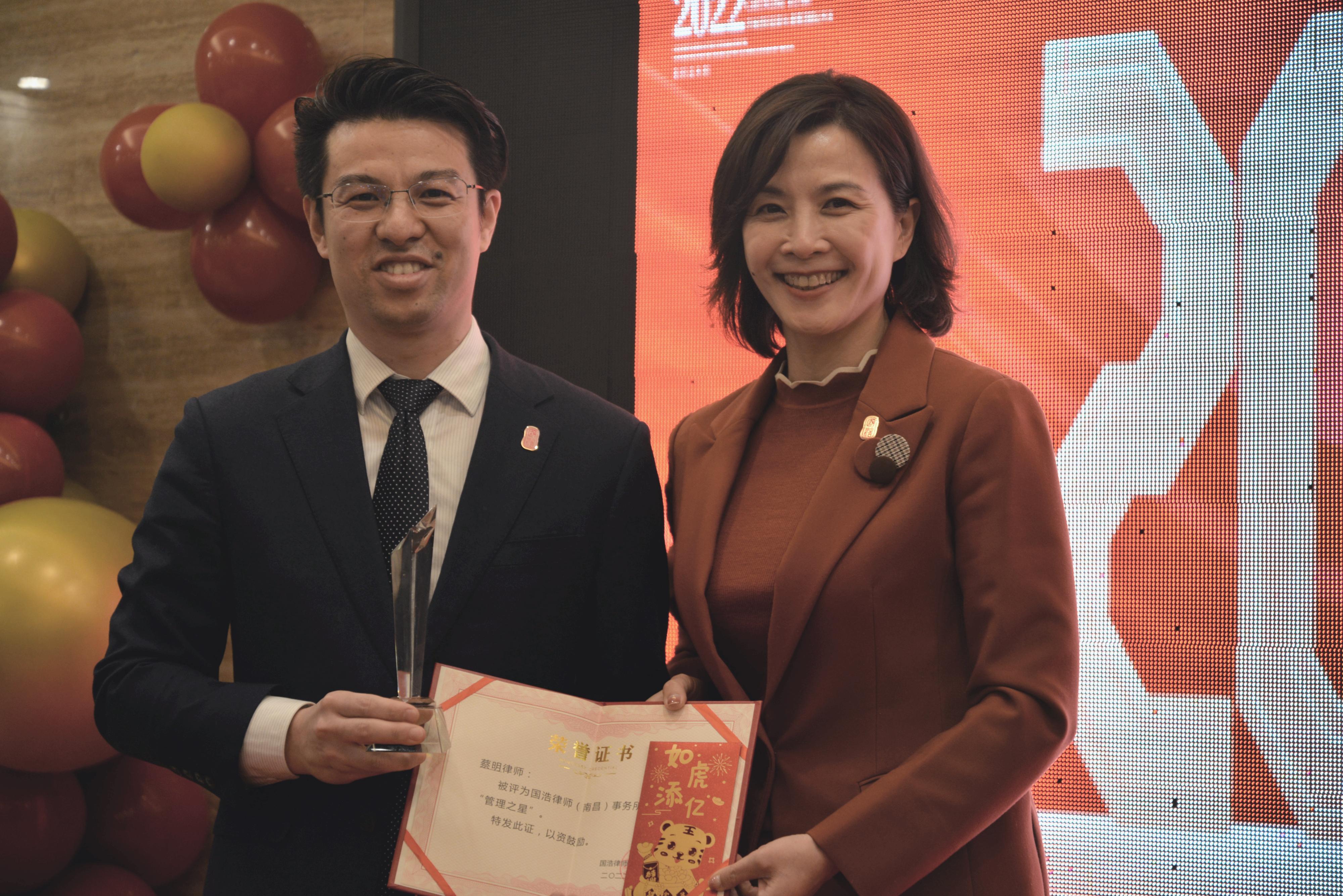 現場還表彰了國浩南昌民主推選產生的2021年“管理之星”“業務之星”“學習之星”“辯論之星”“服務之星”等優秀個人,以期進一步增強國浩南昌青年律師的工作積極性和上進心,為國浩南昌專業化走強之路謀好篇、鋪好路。
