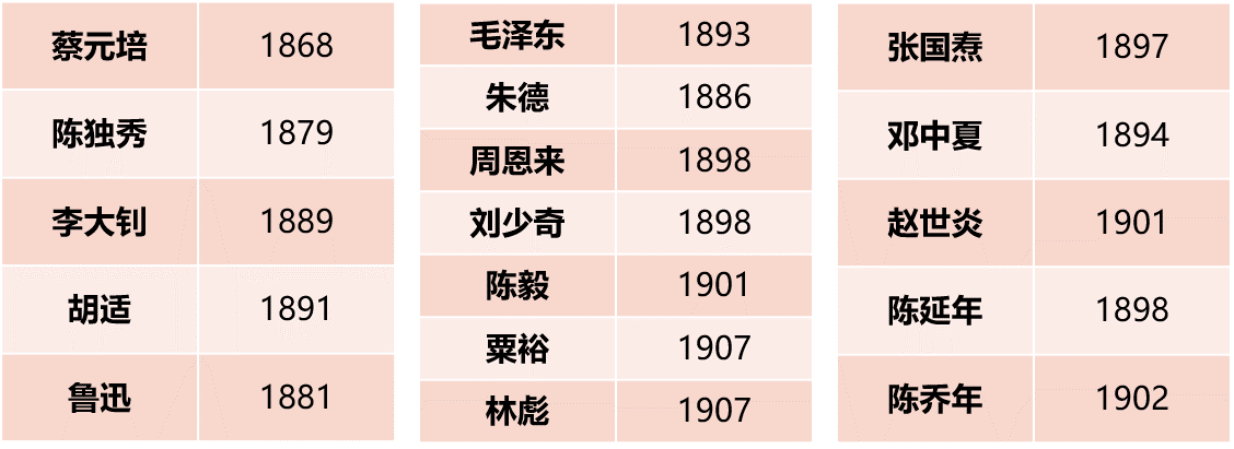 讀書學史,應該時不時把今日擺進去、把自己放進去。于是不經意之間,我把那個時代的人物的年齡隨手記在了筆記本上,并且做成了這樣一張表格。我在想,如果把我們的年齡減100歲,或者把他們的年齡加100歲,于是我們和他們,就成為同時代的人了。進一步想,我們能像他們一樣前仆后繼、奮斗犧牲嗎?退一步說,那個時代與我們同年齡的他們,其奮斗犧牲的精神,能給這個時代與他們同年齡的我們,以什么樣的啟示呢?