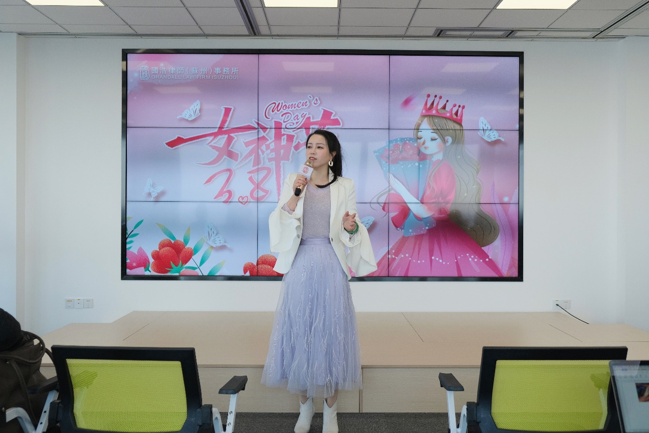 活動伊始,孫曉彥律師作為女工委主任對全體女律師同胞表達了節日的祝福和美好的祝愿,表示接下來女工委將多開展類似活動讓女同胞們相互了解,增強國浩蘇州大家庭的凝聚力和向心力,希望女律師們能在緊張和忙碌的工作狀態中學會放松和享受生活。