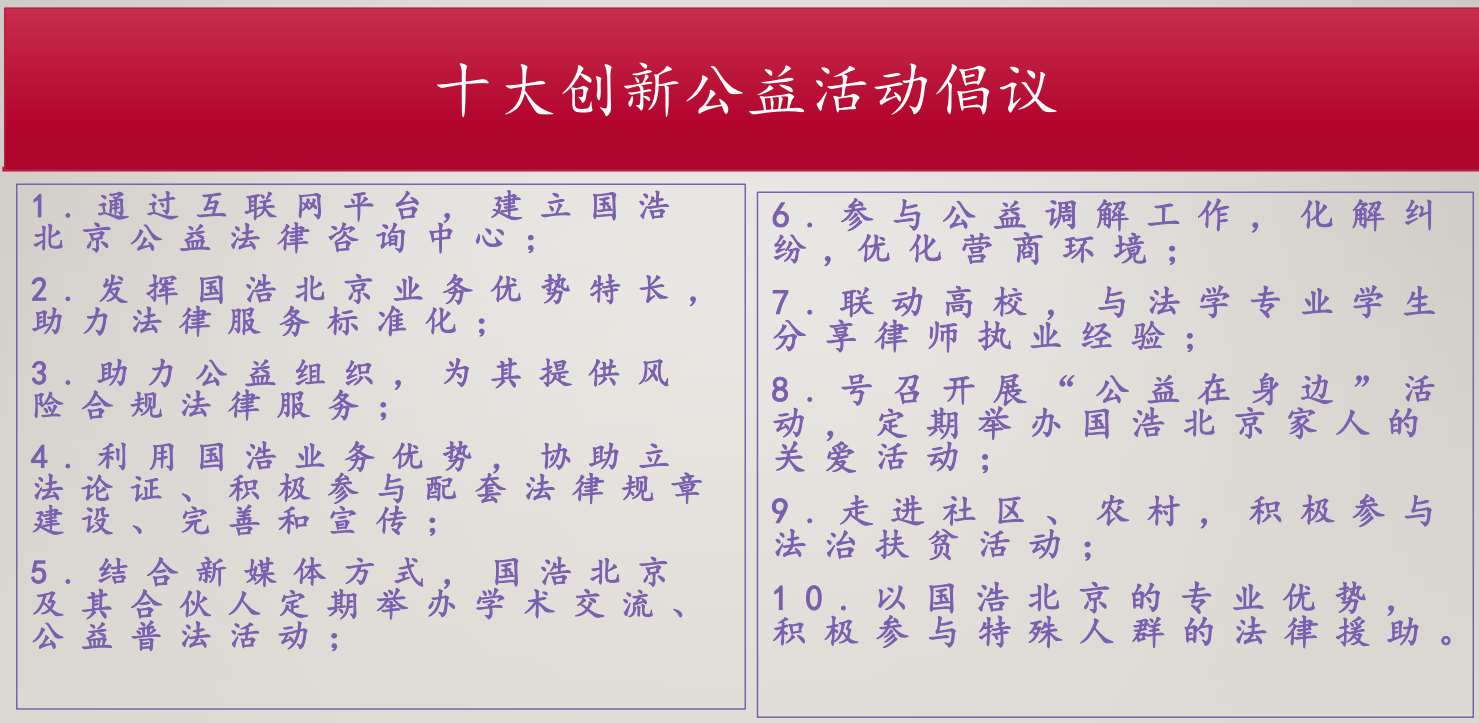 “國浩里 我有個(gè)我們”的MV發(fā)布為唱響“公益在國浩”的行動(dòng)拉開了序幕, 積極號(hào)召國浩北京力量落實(shí)十大公益倡議,為法治公益發(fā)揮律師職業(yè)群體的力量,于點(diǎn)滴務(wù)實(shí)中踐行法治中國建設(shè)。