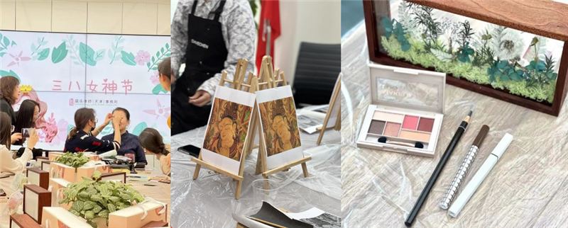 一場“美如天成,妝點靚麗”彩妝現場教學,教大家打造更完美的自己,一起化出風采,化出自信;一場敦煌石板畫DIY,令大家靜心臨摹、著色,沉浸式感受一眼千年的華夏瑰寶;一場復古相框永生花DIY,大家將花朵、枝葉靈活搭配,精心設計,發揮想象力,組合成自己獨一無二的搭配,放入復古相框,將美麗永久封存,赴一場花與時光之約。