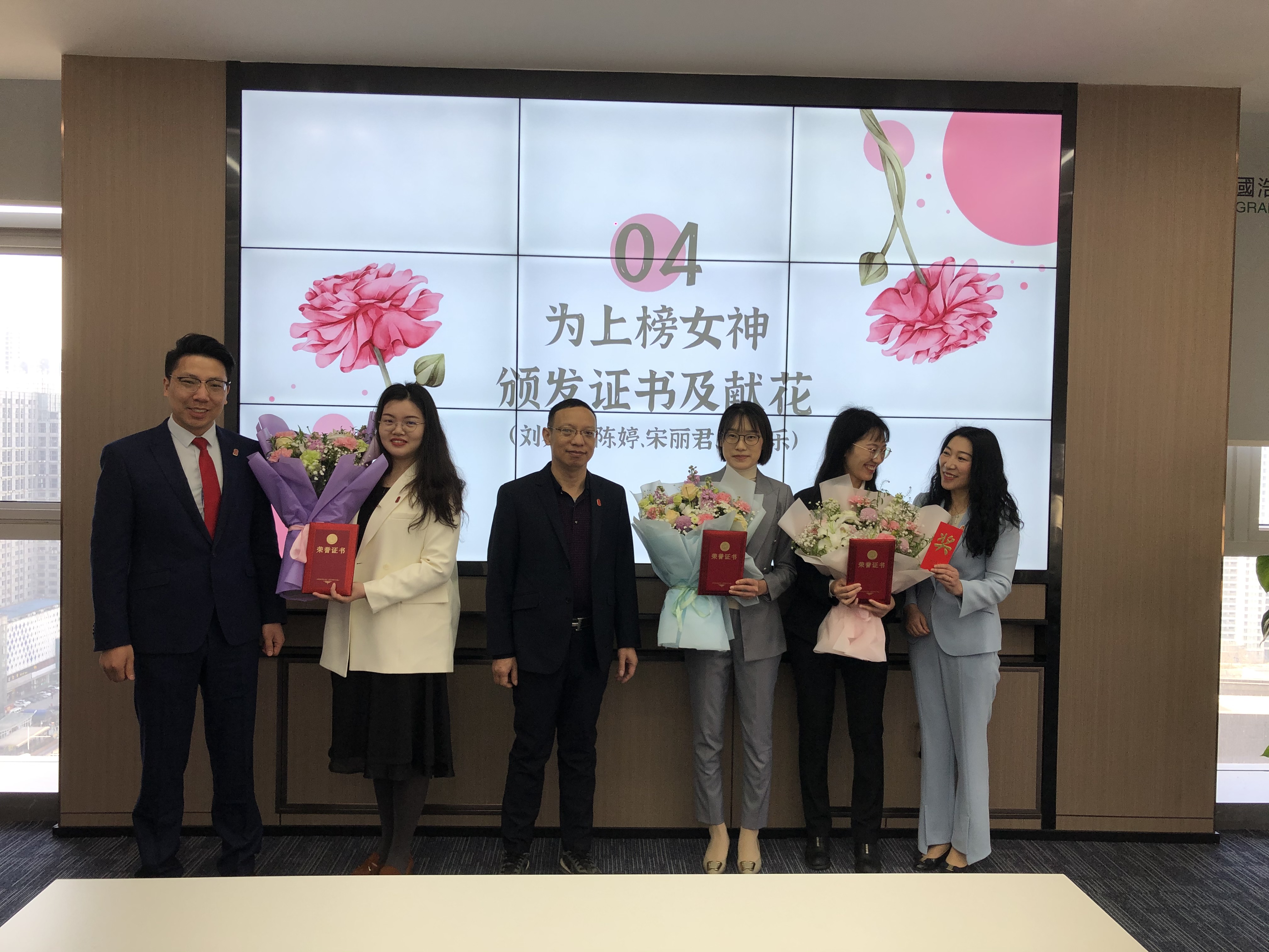 活動表彰了過去一年表現(xiàn)優(yōu)異的“上榜女神”:劉苑玲、陳婷、宋麗君、胡文樂。對兢兢業(yè)業(yè)在崗位默默付出、銳意進取的女神們?nèi)〉米吭匠煽冞M行獻禮,在表達贊美、鼓勵的同時,更為其他女同事們樹立了學(xué)習(xí)的典范。
