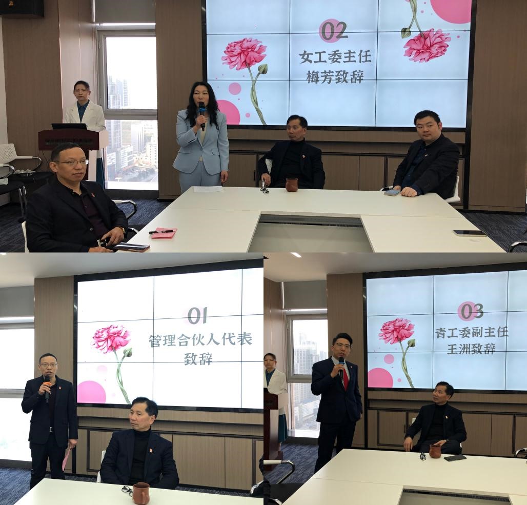 活動開始,由國浩武漢主任、管理合伙人代表夏少林律師、女工委主任梅芳律師、青工委副主任王洲律師致辭,向全體女性員工們表達誠摯的問候,高度贊揚全體女員工們發(fā)揮了“巾幗心向黨、共筑國浩夢”的半邊天作用。