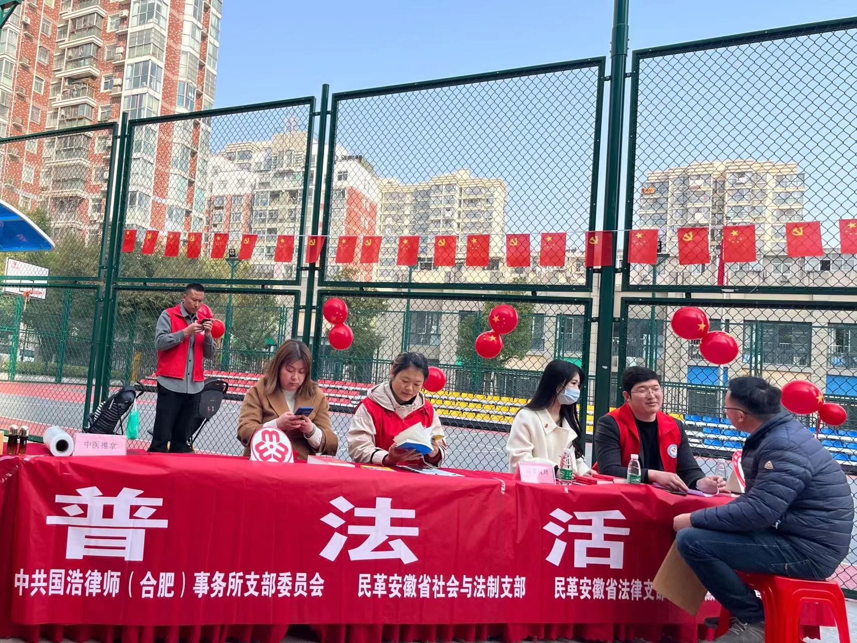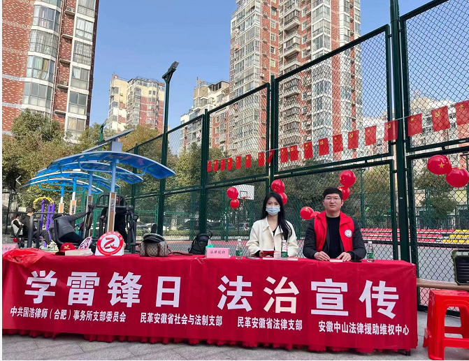 2022年3月3日上午,由合肥蜀山區科企社區黨委、科企社區新時代文明實踐站主辦,國浩合肥黨支部、民革安徽省社會與法制支部、民革安徽省法律支部、安徽中山法律援助維權中心聯合承辦的《弘揚傳統承美德 黨員志愿聚活力》主題“3·5學雷鋒紀念日”志愿者活動在合肥市蜀山區馨怡家園黨群服務中心廣場順利舉行。國浩合肥律師劉敏琪、姜龍飛,實習律師趙永健,安徽中山法律援助維權中心工作人員李鑫參加了活動。
